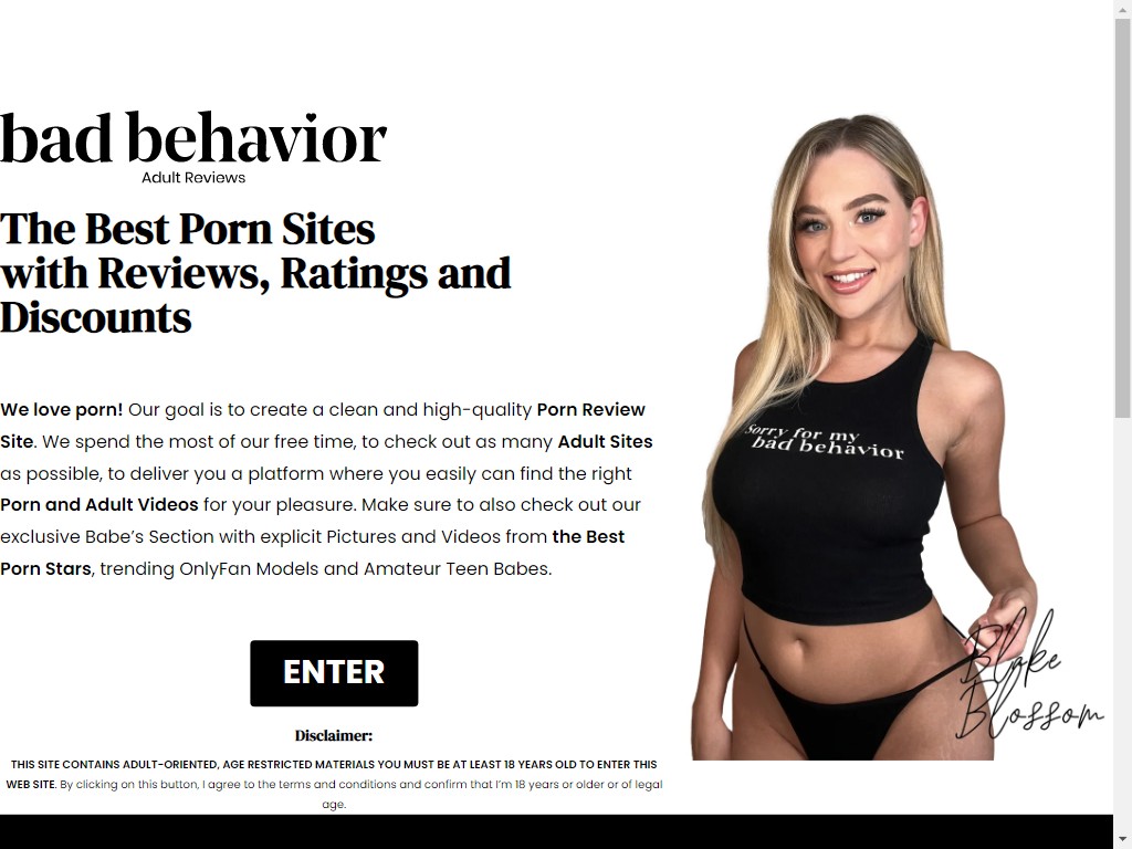 bad-behavior.net is a porn website with the title The Best Porn Sites with Reviews, Ratings and Discounts. The description is Only The Best Porn Sites with Reviews, Ratings and Discounts. Find New & Exclusive Porn Sites for your Ultimate Pleasure | bad behavior. The website was added to the web directory on 2024-05-08 07:36:36.