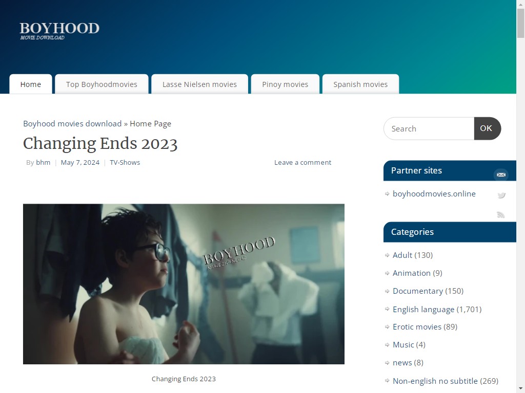 boyhoodmovies.org is a porn website with the title Boyhood movies download. The description is Download boyhood movies! Coming of age movie download! Gay themed movie download!. The website was added to the web directory on 2024-05-08 07:36:36.