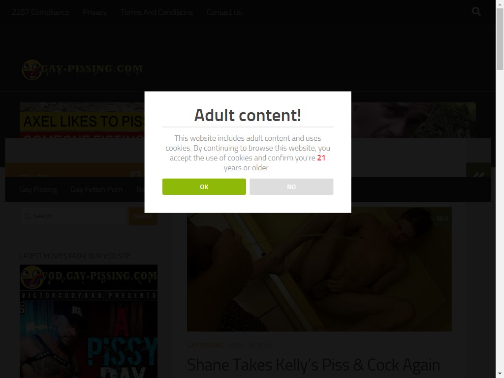 gay-pissing.com is a porn website with the title Gay-Pissing.Com - The Best Gay Pissing Porn. The description is Gay-Pissing.Com is the best place to watch hundreds of gay pissing porn videos. Just choose a clip from our great collection and push the play button. Enjoy!. The website was added to the web directory on 2024-05-08 07:36:36.