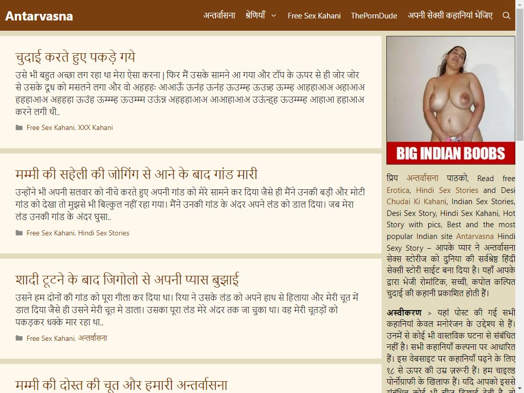 hindipornstories.org is a porn website with the title Antarvasna Free Sex Kahani - Hindi Sex Stories. The description is Read Antarvasna, gandi kahani, Desi kahani, Hindi sex stories, Samuhik Chudai kahani, Hindi sex kahani and more on Hindipornstories.org. The website was added to the web directory on 2024-05-08 07:36:36.