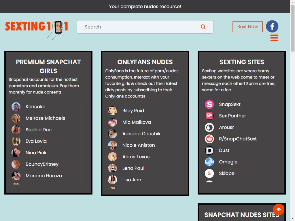 sexting101.com is a porn website with the title Sexting101: Your Complete Sexting Resource. The description is Sexting101 is your one stop shop for all sexting and nude needs. We review nude models, sexting websites and apps, and more.. The website was added to the web directory on 2024-05-08 07:36:36.