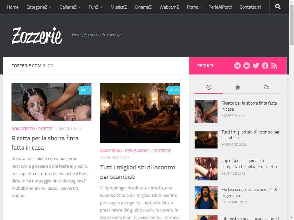 zozzerie.com is a porn website with the title zozzerie.com - ...del meglio del nostro peggio. The description is Siti zozzi, video zozzi, foto zozze... 'na zozzeria che nun se ne po più.... The website was added to the web directory on 2024-05-08 07:36:36.